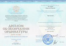 Окончила ординатуру ФГБОУ Национальный медицинский исследовательский центр «Центральный научно-исследовательский институт стоматологии и челюстно-лицевой хирургии» Министерства здравоохранения Российской Федерации